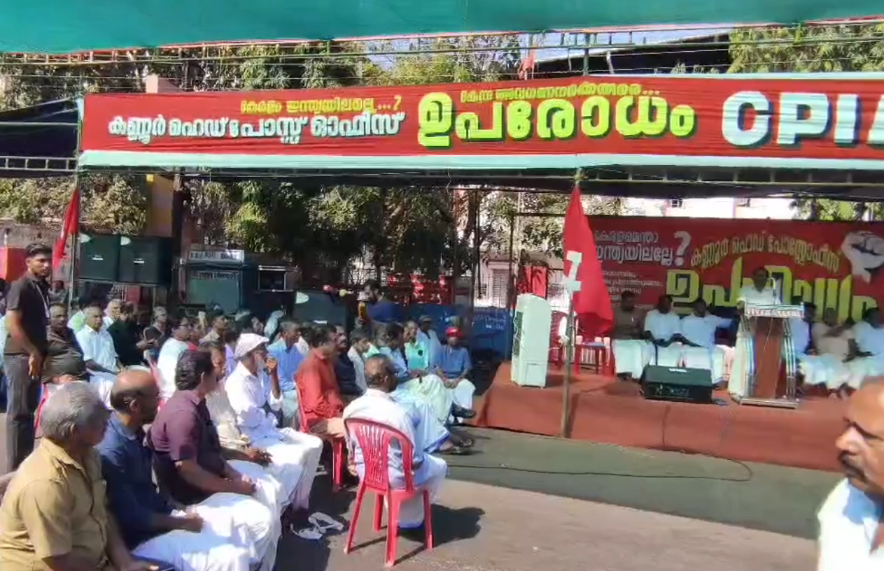 വഞ്ചിയൂരിൽ ഗതാഗതം തടസ്സപ്പെടുത്തി ഏരിയ സമ്മേളനം നടത്തിയതിന്റെ പേരിലുള്ള കേസ് ഹൈകോടതിയുടെ പരിഗണനയിലിരിക്കെ, കണ്ണൂരിൽ റോഡ് കൈയേറി സി.പി.എം ഉപരോധ സമരം. ‘കേരളമെന്താ ഇന്ത്യയിൽ അല്ലേ’ എന്ന ചോദ്യമുയർത്തി സി.പി.എം കണ്ണൂർ ഹെഡ്പോസ്റ്റ് ഓഫിസ് ഉപരോധത്തിന്റെ ഭാഗമായാണ് റോഡിൽ പന്തൽ ഒരുക്കിയത്.ഹെഡ് പോസ്റ്റ് ഓഫിസിനോട് ചേർന്ന് വേദിയും തൊട്ടുമുന്നിലെ റോഡിൽ പന്തലിട്ട് കസേരയും നിരത്തിയിട്ടാണ് ഉപരോധ സമരം. റോഡ് കൈയേറി പന്തൽ ഒരുക്കിയതിനാൽ ഈ വഴിക്കുള്ള ഗതാഗതം തിരിച്ചുവിട്ടിട്ടുണ്ട്. അതീവ തിരക്കുള്ള റോഡിൽ പന്തൽ കെട്ടിയിട്ടും അധികൃതർ ആരും തടയാൻ എത്തിയില്ലെന്നതാണ് ആശ്ചര്യകരം.