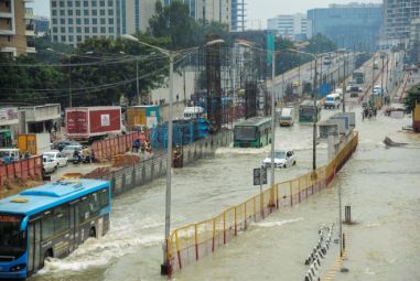 ഞായറാഴ്ച രാത്രിയിൽ വീണ്ടും പെയ്ത കനത്ത മഴയിൽ വെള്ളക്കെട്ടായി ബെംഗളൂർ നഗരം