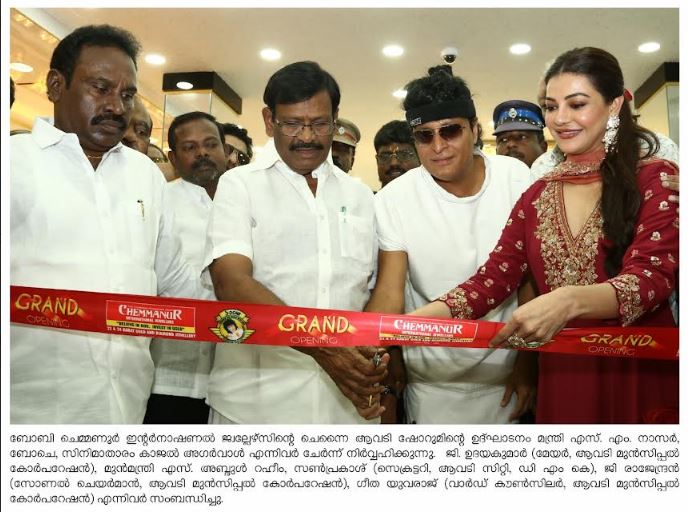 162 വര്ഷത്തെ വിശ്വസ്ത പാരമ്പര്യമുള്ള ബോബി ചെമ്മണൂര് ഇന്റര്നാഷണല് ജ്വല്ലേഴ്സിന്റെ ചെന്നൈയിലെ രണ്ടാമത്തെ ഷോറൂം ആവടിയില് പ്രവര്ത്തനമാരംഭിച്ചു. ഒക്ടോബര് 4 ശനിയാഴ്ച രാവിലെ 10.30 ന്, എസ് എം നാസര് (Minister of Minorities Welfare, Non-Resident Tamils Welfare, Refugees & Evacuees and Wakf Board, Government of Tamil Nadu), ബോചെ (812Km. Run Unique World Record Holder & Guinness Record: World Peace), സിനിമാതാരം കാജല് അഗര്വാള് എന്നിവര് ചേര്ന്ന് ഷോറൂം ഉദ്ഘാടനം ചെയ്തു. സ്വര്ണാഭരണങ്ങളുടെ ആദ്യ വില്പ്പന ജി ഉദയകുമാര്(മേയര്, ആവടി മുന്സിപ്പല് കോര്പറേഷന്) നിര്വ്വഹിച്ചു. മുന്മന്ത്രി എസ്. അബ്ദുള് റഹീം, സണ്പ്രകാശ് (സെക്രട്ടറി, ആവടി സിറ്റി, ഡി എം കെ), ജി രാജേന്ദ്രന് (സോണല് ചെയര്മാന്, ആവടി മുന്സിപ്പല് കോര്പറേഷന്), ഗീത യുവരാജ് (വാര്ഡ് കൗണ്സിലര്, ആവടി മുന്സിപ്പല് കോര്പറേഷന്) എന്നിവര് ആശംസകളറിയിച്ചു. അനില് സി.പി. (ജി.എം. മാര്ക്കറ്റിംഗ്, ബോബി ചെമ്മണൂര് ഇന്റര്നാഷണല് ഗ്രൂപ്പ്) സ്വാഗതവും ജോജി എം. ജെ. (പി.ആര്.ഒ.) നന്ദിയും അറിയിച്ചു. ഉദ്ഘാടനവേളയില് ആവടിയിലെ തിരഞ്ഞെടുക്കപ്പെട്ട നിര്ധനരായ രോഗികള്ക്ക് ബോചെ ഫാന്സ് ചാരിറ്റബിള് ട്രസ്റ്റ് നല്കുന്ന ധനസഹായം വിതരണം ചെയ്തു. ബോചെയുടെ ഇന്സ്റ്റഗ്രാം പേജ് ഫോളോ ചെയ്ത് ‘ഫ്രീ തങ്കബിസ്കറ്റ് കോണ്ടസ്റ്റി’ ല് പങ്കെടുത്തവരില് നിന്നും തിരഞ്ഞെടുക്കപ്പെട്ട ഷംനാദ് ഷാഹിക്ക് ബോചെ തങ്കബിസ്കറ്റ് സമ്മാനിച്ചു.