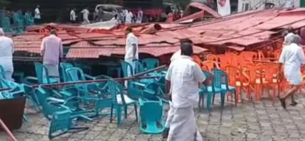 പന്തലിനുള്ളില് കുടുങ്ങിയവര്ക്ക് നിസാരപരിക്കേറ്റിട്ടുണ്ട്. മറ്റ് ആളപായങ്ങളില്ല. എന്താണ് സംഭവിച്ചതെന്ന് അന്വേഷിക്കുമെന്നും വലിയ അപകടം ഒഴിവായത് ആശ്വാസമാണെന്നും ഡിസിസി പ്രസിഡന്റ് മുഹമ്മദ് ഷിയാസ് പറഞ്ഞു. സ്ഥിരമായി പന്തല് ഇടുന്നവര് തന്നെയാണ് ഇവിടെയും പന്തല് ഇട്ടത്. പരിപാടി കൃത്യസമയത്ത് നടക്കുമെന്നും ഷിയാസ് വ്യക്തമാക്കി.ശബരിമല സ്വര്ണക്കൊള്ളയ്ക്കും വിശ്വാസ വഞ്ചനയ്ക്കുമെതിരെയാണ് കെപിസിസി വിശ്വാസ സംരക്ഷണ യാത്ര സംഘടിപ്പിക്കുന്നത്. ഇതിന്റെ മധ്യമേഖല യാത്ര ബെന്നി ബെഹ്നാന് എംപിയാണ് നയിക്കുന്നത്.