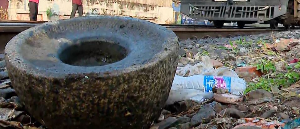 ട്രാക്കിന്റെ മധ്യഭാഗത്താണ് ആട്ടുകല്ല് കണ്ടെത്തിയത്. മൈസുരു- കൊച്ചുവേളി ട്രെയിന് ഈ വഴി കടന്നുപോകുന്നതിനിടെ ലോക്കോ പൈലറ്റാണ് ട്രാക്കില് ആട്ടുകല്ല് കിടക്കുന്നത് കണ്ടത്. തുടര്ന്ന് ട്രെയിന് നിര്ത്തിവെച്ച് റെയില്വേ സ്റ്റേഷനിലും പൊലീസിലും വിവരമറിയിച്ചു.